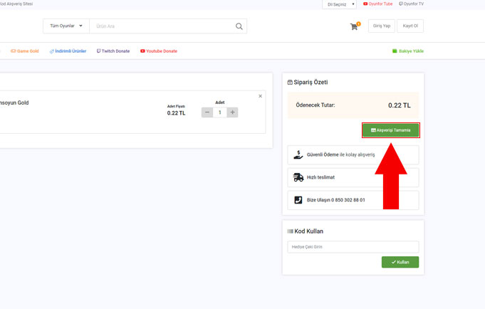3.ADIM "Alışverişi Tamamla" butonuna tıklayınız.Teslimat Noktasını öğrenmek için Canlı Desteğe bağlanınız.