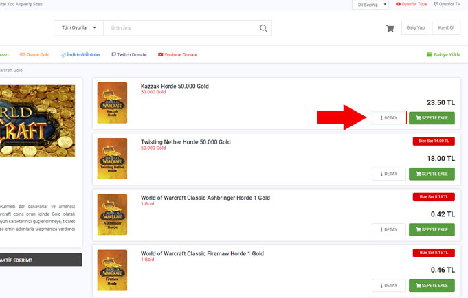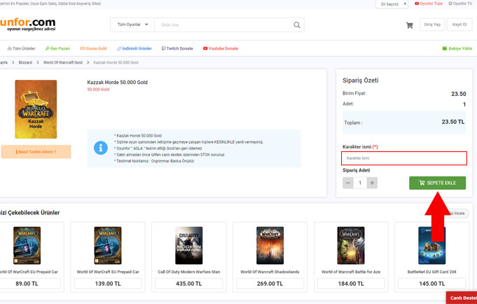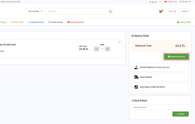 Belirli Miktar Seçimi: İhtiyacınız olan miktarda Gold'u seçin ve sepetinize ekleyin.