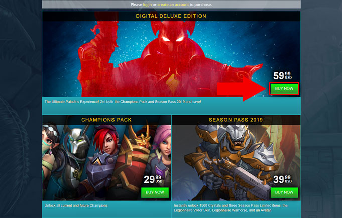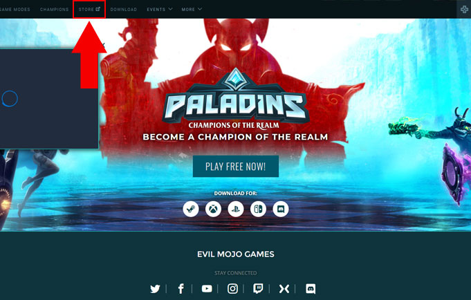1.ADIM Paladins sayfasına giriş yaptıktan sonra üst menüden “Store”‘a tıklayın.