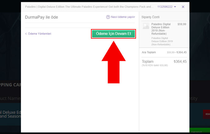 5.ADIM “Ödeme için Devam Et” butonuna tıklayın.