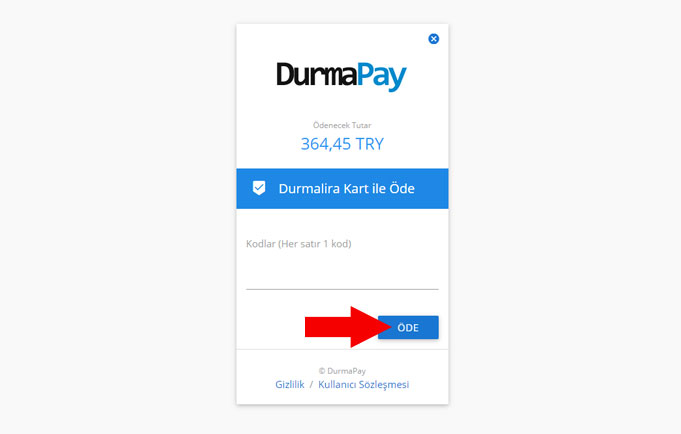6.ADIM Satın almış olduğunuz kodu girin ve “ÖDE” butonuna tıklayın.