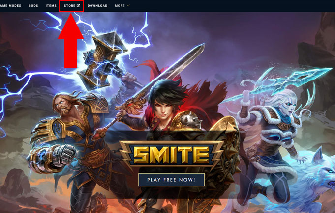 1.ADIM Smite sayfasına giriş yaptıktan sonra üst menüden “Store”‘a tıklayın.