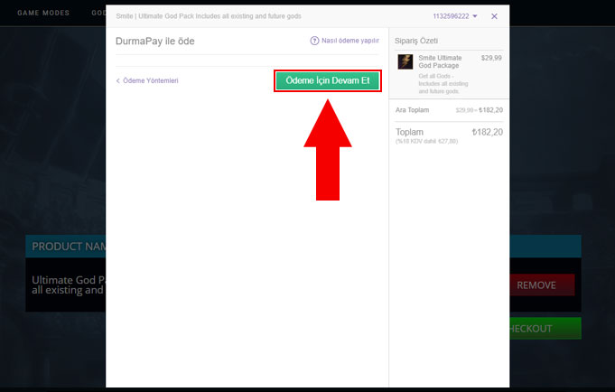 5.ADIM “Ödeme için Devam Et” butonuna tıklayın.