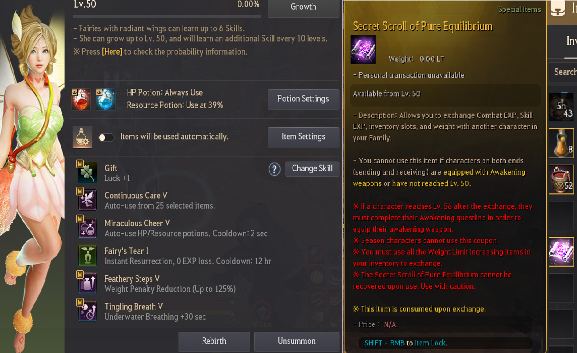 Secret scroll of pure equilibrium(sentez kitabı) var. İstediğiniz karaktere ağırlığı,nefesi herşeyi aktarabilirsiniz.