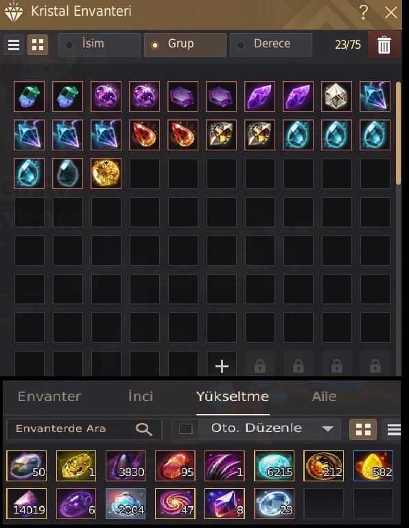 Aile envanteri 8 slot 200lt ağırlık, kristal envnateri 75 slot