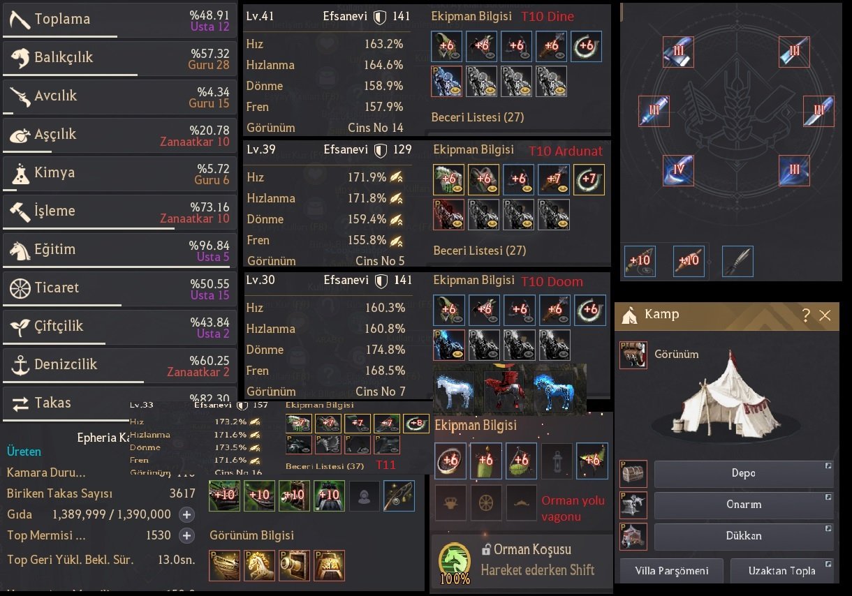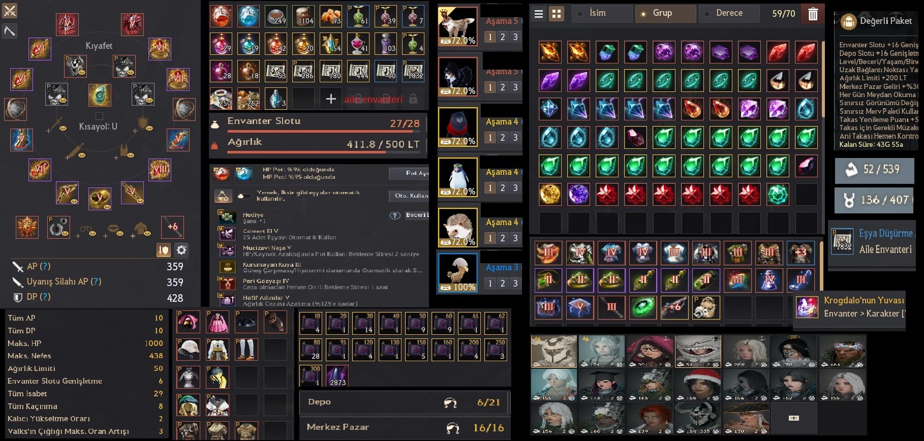 Life karakteri 192 envanter 2076lt. Kalıcı borazan. Kimya, at ve işleme inci kostümleri var.