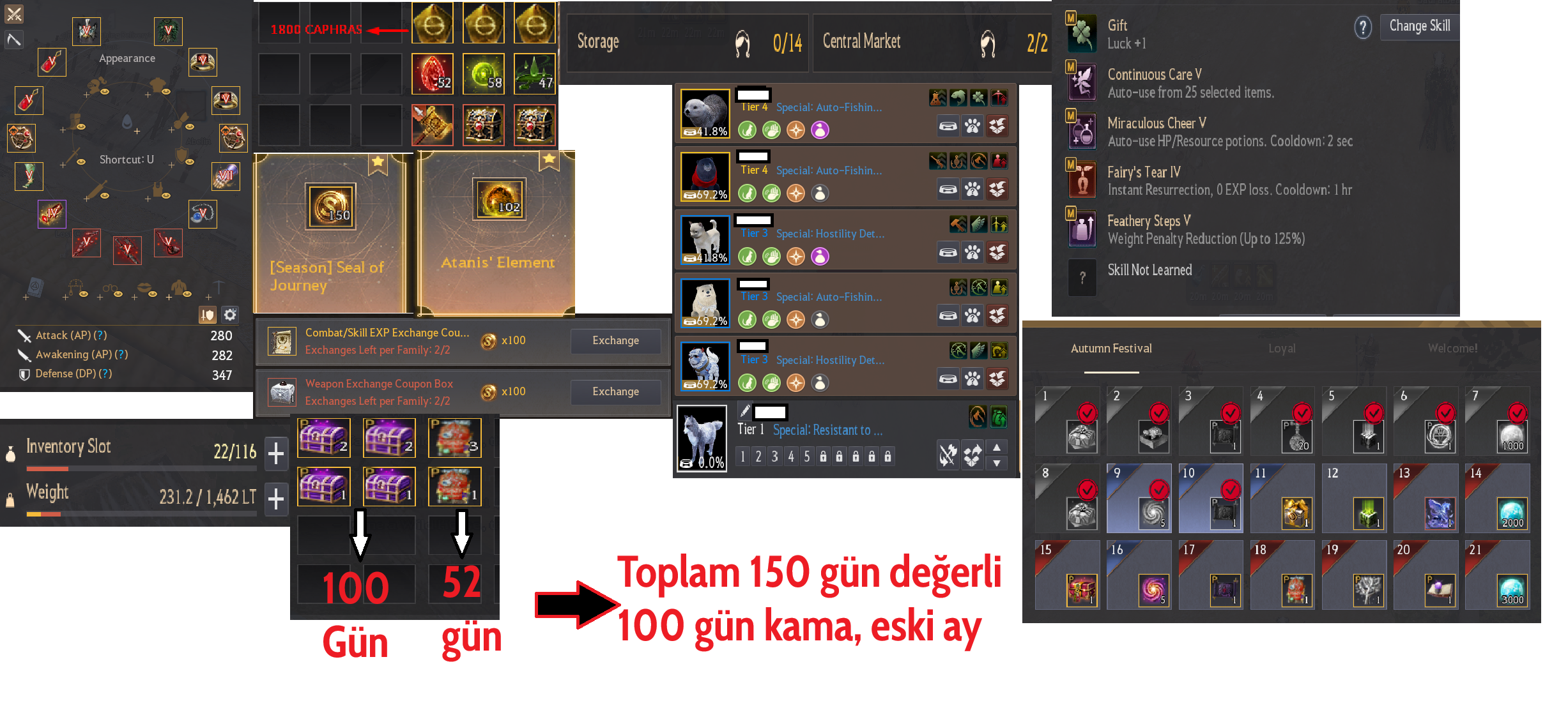 150 günlük açılmamış değerli paket mevcut. 100 Gün kama ve eski ay açılmamış şekilde mevcut
