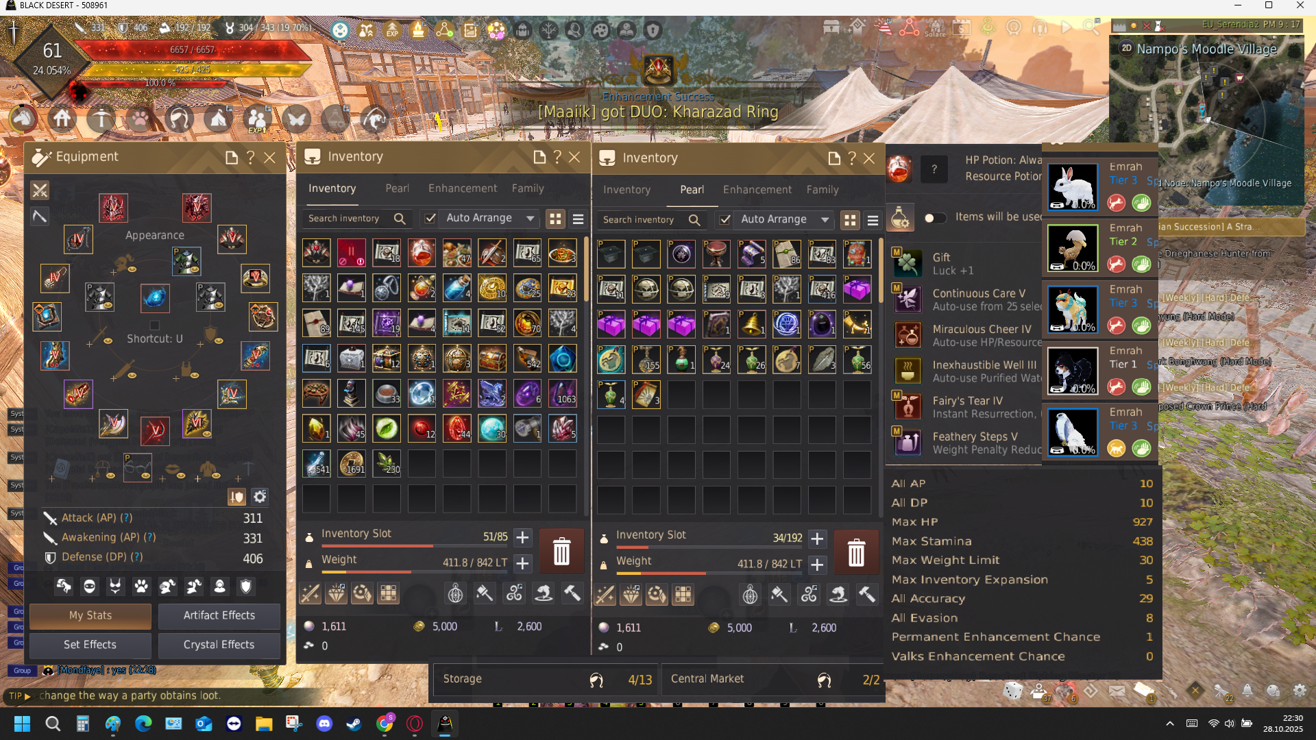 436 eşya düşürme 6 lvl alt silah hükümran pen karayıldız uyanış 1 garanti yüzük yaparak 335 ap oluyor hp potu var mana pot parçaları zoru hazır diğerleri yapılıyor fotoda var ana silah bssi tet den düştü tekrar basılması kolay yapılır kafalık tri diğerleri duo detay için yazın