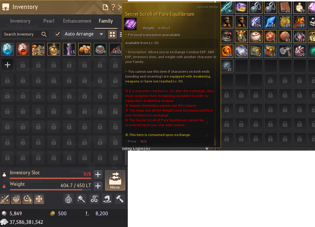 Secret Scroll of Pure Equilibrium (sentez kitabı) vardır. İstediğiniz classa ağırlık, nefes her şeyi aktarabilirsiniz.