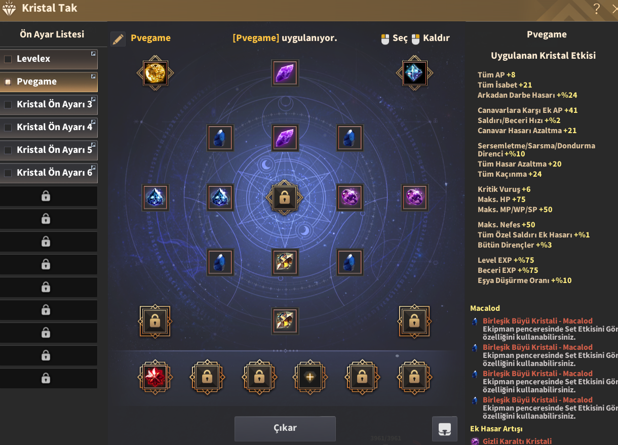 PVE için en iyi kristaller, eserler ayarlıdır.
