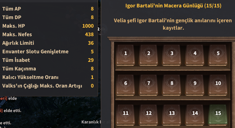PEN Hükümran uyanış, HEX Kharazad kemer, SEP Kharazad kolye mevcuttur.