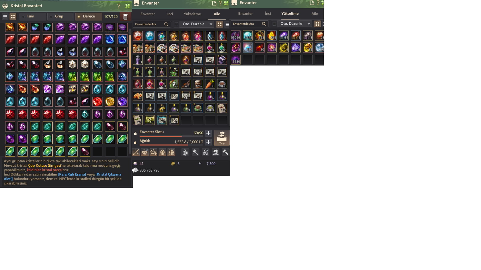 AİLE ENVANTERİ NORMAL BİR ENVANTER GENİŞLİĞİNDEN FAZLA OLABİLİR 90 SLOT 2000LT