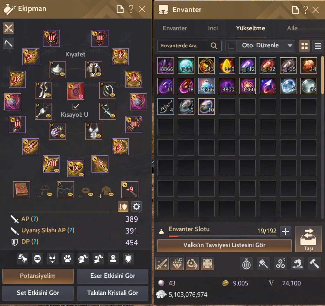 Karakter Olarak Cadı 66/ Wızard62/ Sage 61/ Maegu 64/ Maehwa 64 / Dah Böyle Karısık Charlar var