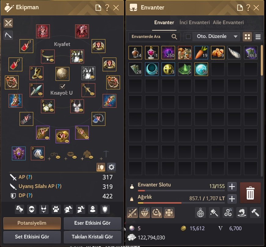 HESAPTA LABRESCA DUO, ÖLEN TANRI DUO, DHAN ELDİVENİ DUO, ATOR TRİ, SİLAHLARIN HEPSİ HÜKÜMRANDIR. ANA SİLAH VE ALT SİLAH PEN SEVİYESİNDE OLUP UYANIŞ SİLAHI HEX SEVİYESİNDEDİR. TAKILAR FULL CAPOTİA' DIR.
