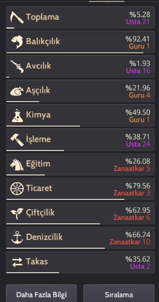 543 Enerji 418 Katkı 65 drakania-62 sahire-63 witch-63 zerk çoğu karakterinde envanter ağırlık mevcut 5-6 karakterde açılmış orzeka set Karak yükseliş mavi toplu ve gelişim Kimya aşçılık balıkçılık guru 48 İşçi % 90 zaanatkar 31 depo 20 merkez t10 pegasus t9 doom dine pegasus mevcut hp mp pusula harita mevcut Açılmamış 11 değerli (30 gün) 22x kamasylve 22x eski ay depoda Resimlerde çoğu detayı koymaya çalıştım kaçırdığım detay varsa sorun söyleyelim