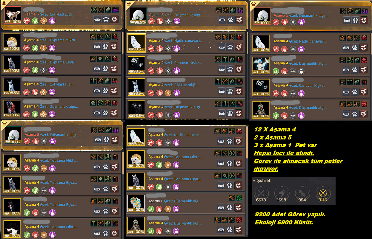 Karakterler gerekli boss'lar ve Clan boss'larında.