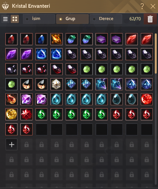 2adet 62lv 3adet 61lv 5adet 60lv karakter bulunmaktadır.