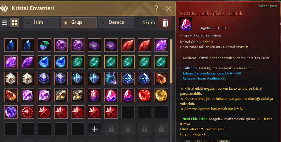 Grind çarıdır. Edana Han Kristali mevcuttur. Aktif olarak hala oynuyorum ve item basmaya devam ediyorum. Çarda: Pusula, Teleskop ve Harita hazine eşyası mevcut. T10 Pegasus mevcut. 40 Adet depocu var. Peri skilleri tam sadece Cömert El IV. 5K Ağrılık Limiti var. 607 enerji var. Envanterin hepsi açık.
