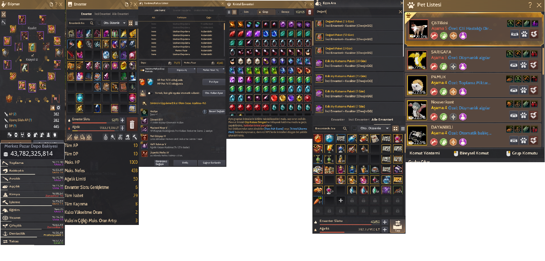 Hesapta Pusula , Harita Krogdalo yuvası ve 2 adet teleskop mevcuttur. Hemen hemen bütün karakterler vardır ve hepsi 62 lvl üstüdür. Çoğunda ağırlık mevcuttur. Zamanım olmadığından dolayı satıyorum. Merak ettiklerinizi sorabilirsiniz.