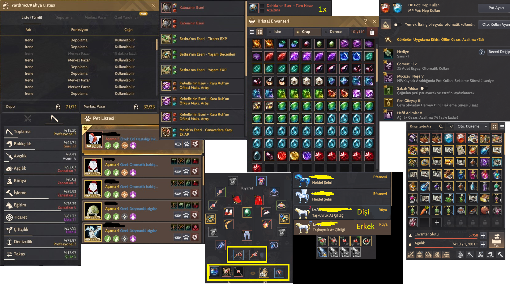 Çoğunun envanter slotu 180 dır full olanlar vardır.