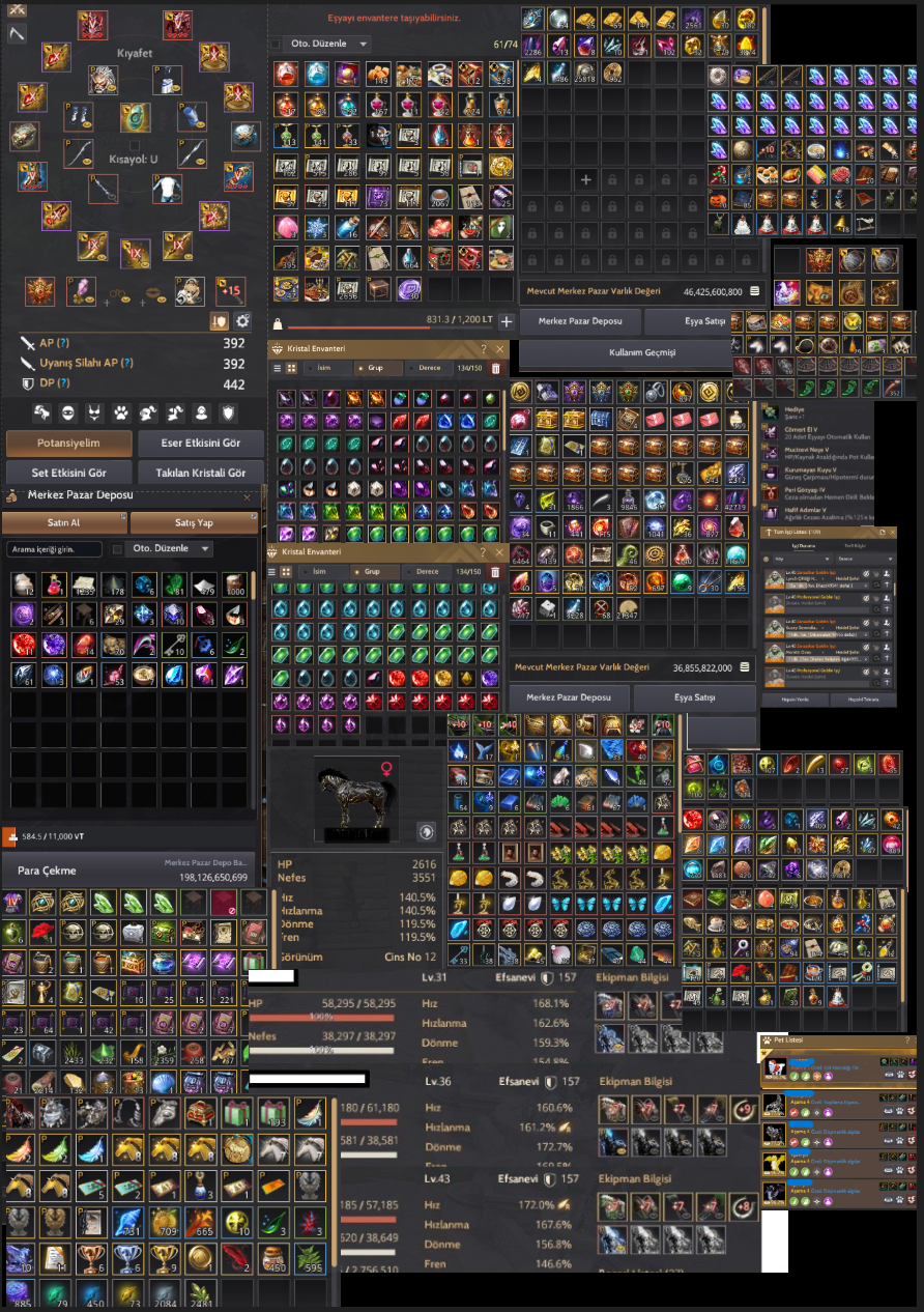 150 Slotluk Kristal envanteri mevcut olup çoğu pve,pvp,life taşları mevcuttur.