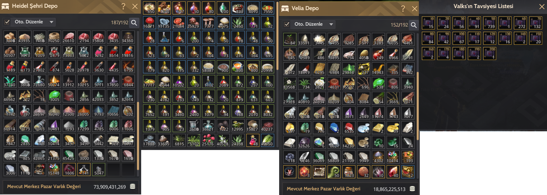 36 KARAKTER ÇOĞU 62 LEVEL ÇOĞU KARAKTERDE AĞIRLIK- BORAZAN VE ENVANTER VARDIR. 2300 SC- PARFUMLER- BÜTÜN SLOTLAR ICIN BOLCA IKSIRELR VE DEPODA CRAFT ICIN UYGUN SİSTEM HAZIRDIR. İŞÇİ İMPARATORLUĞU VAR. ÇOĞU DEPODA BÜTÜN CRAFTLAR İÇİN UYGUN MALZEME VAR FAKAT EN FAZLALARI KOYDUM İLANA.