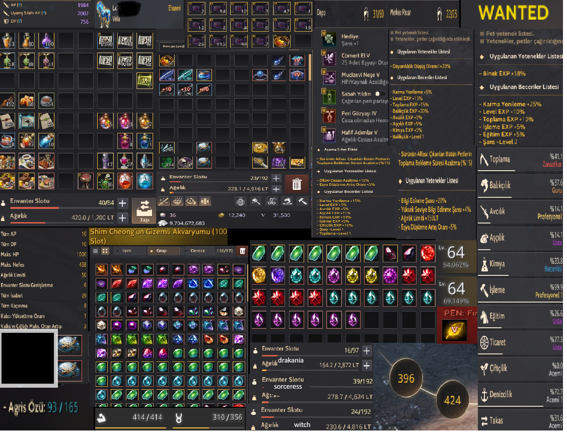 x2 64 Level Drakania ve Witch ve x2 62 Level Maegu ve Guardian karakterleri, kalan 16 karakter ise 60-61 aralığındadır