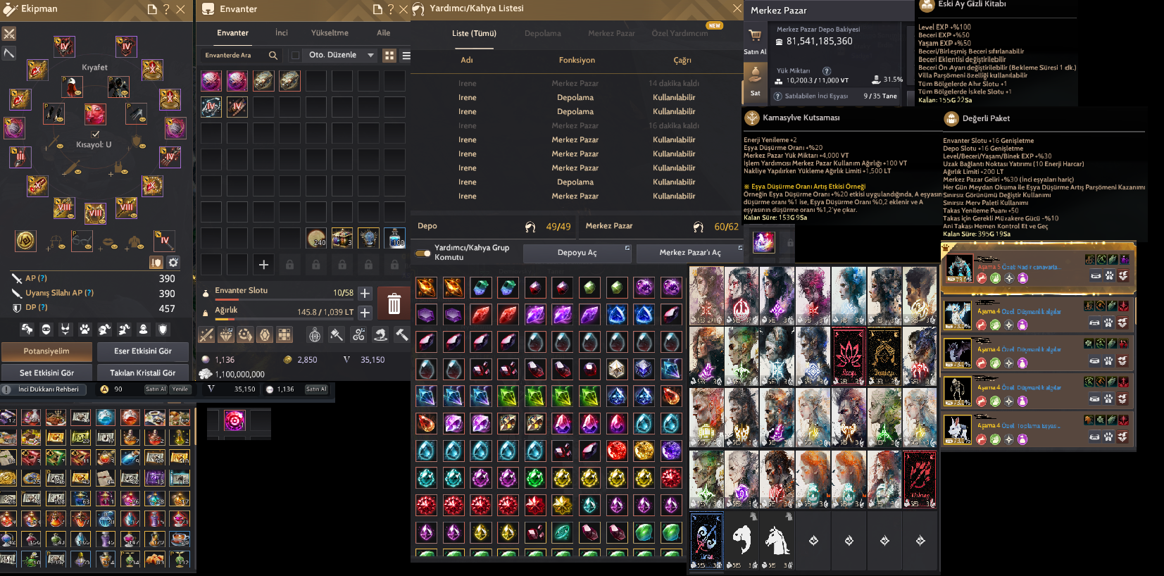 Main karakter 65lvl ve 66 olmak üzere. 64-63 charlar var. Bolca 62lvl hazır char var.