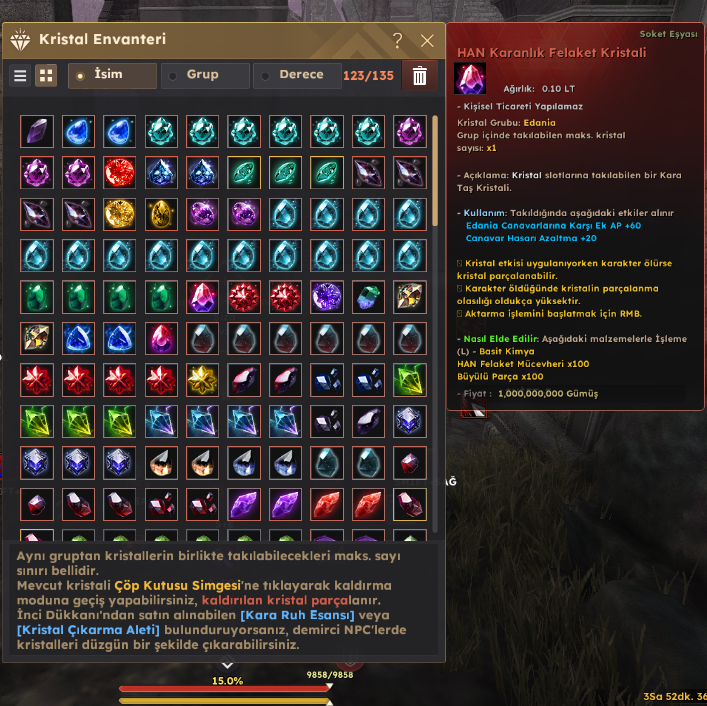 – PvP-PvE kristalleri tam RBF'ler full 1 adet JIN isabet var