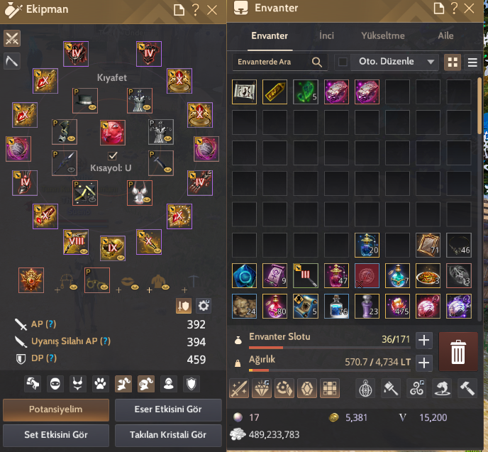 Taş Setleri mevcut oyunda mevcut butun slotları donebilmektedir. (PVP-PVE)