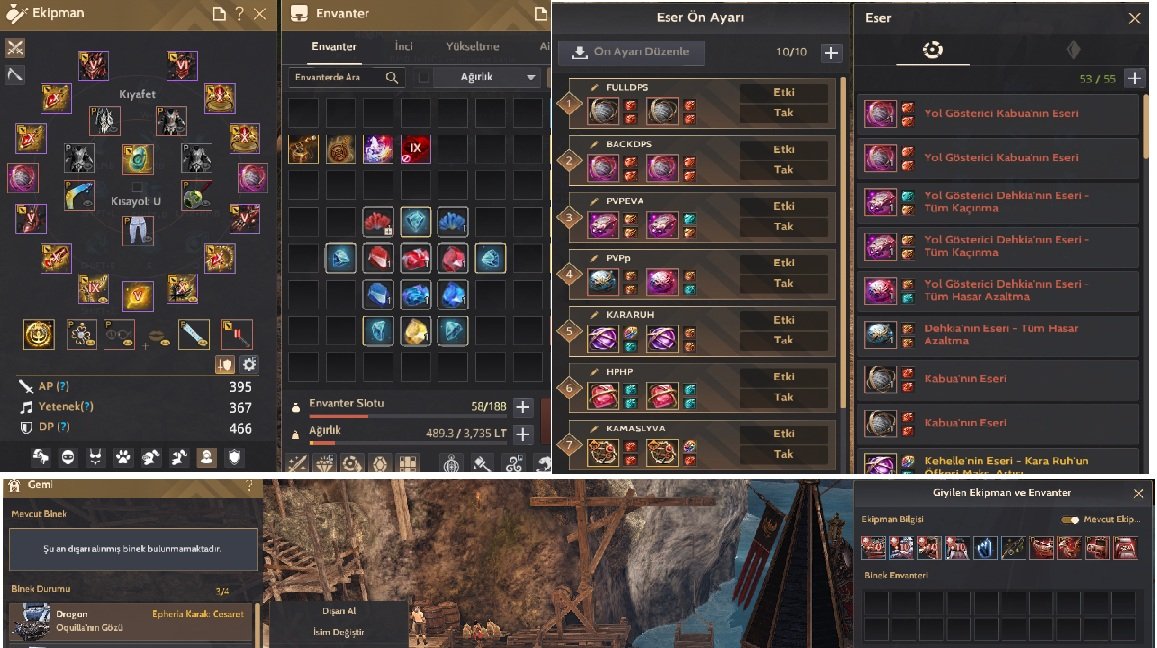 Eserler, eser kombinleri hepsi pve ve pvp için bulunmakta