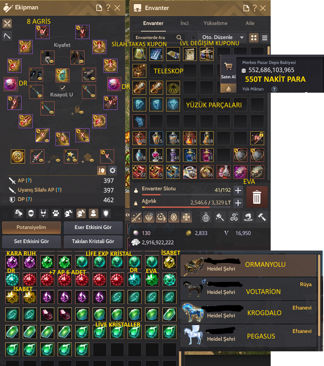 550T NAKİT PARA MEVCUTTUR. (LİFE İTEMLERİ SATILIRSA 1200T'YE YAKIN PARA OLUR)