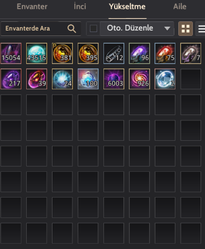 Treasure itemler, life set, garmoth petler ve dr eserler eksik.