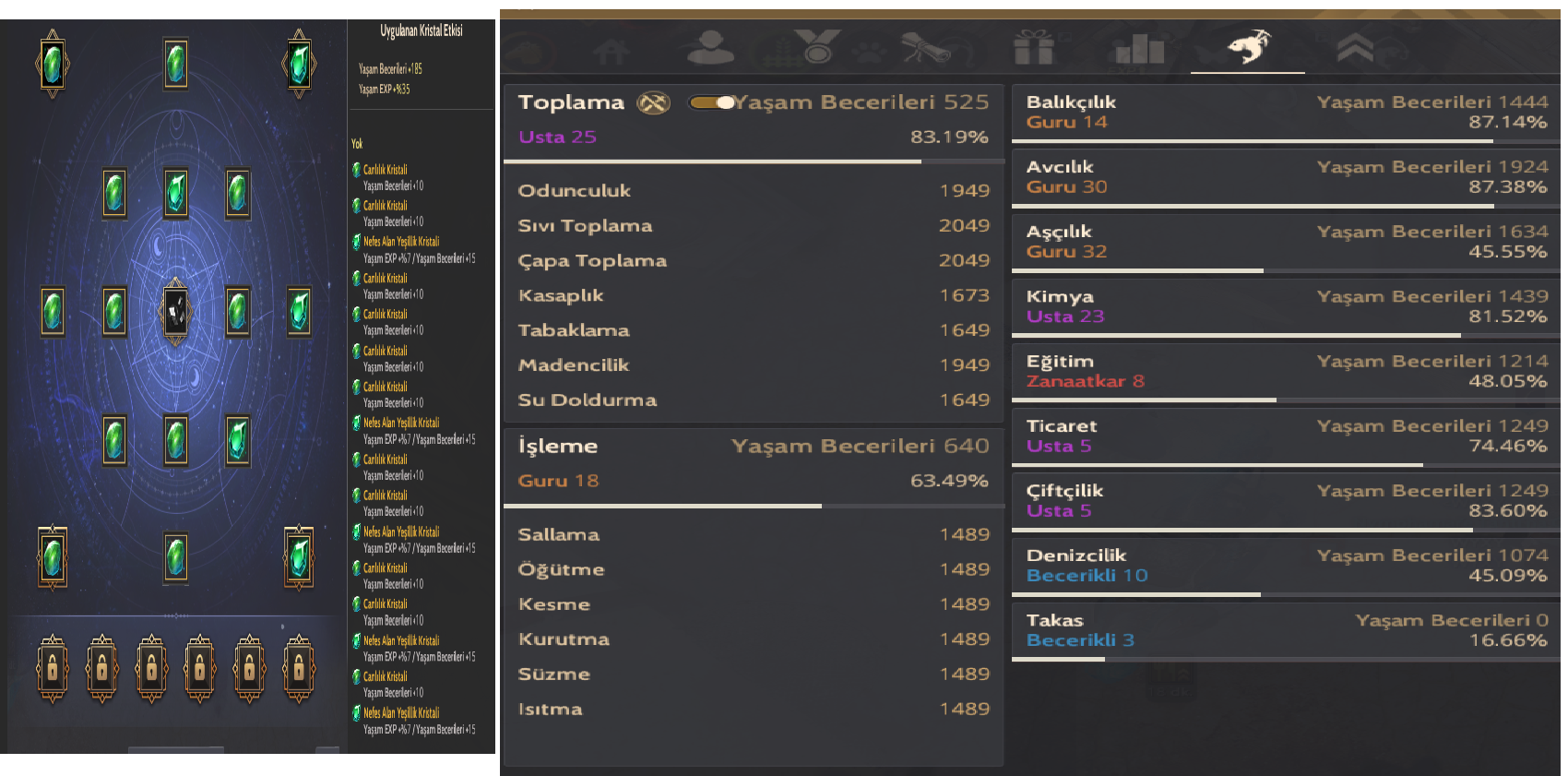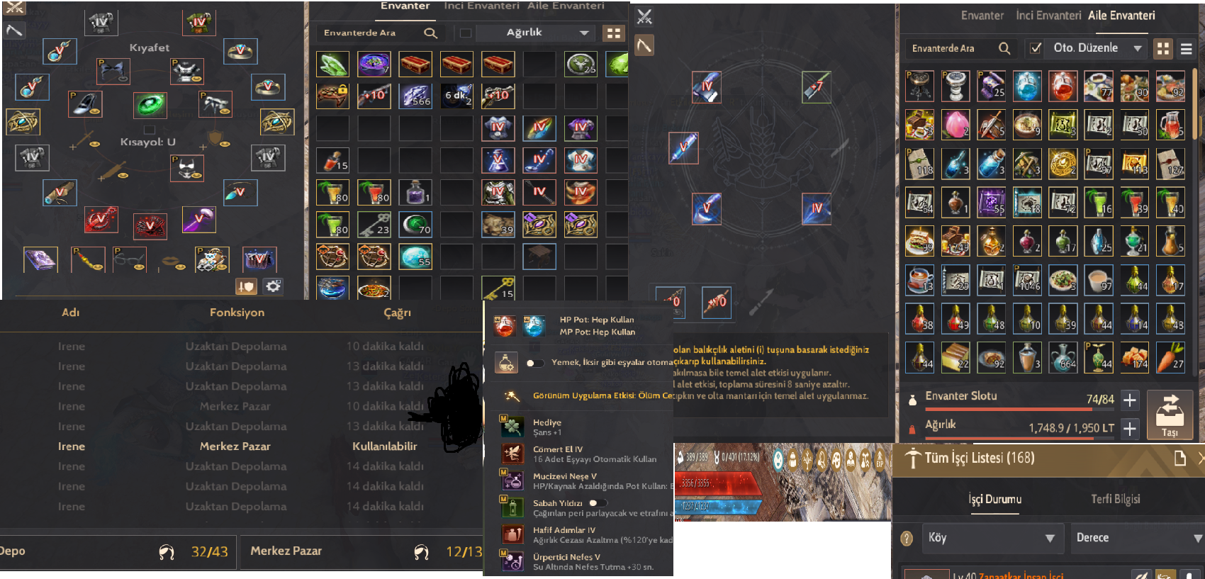 HESAPDA LİFE İÇİN KOSTUMLER CRİO CANTALARI MEVCUTTUR İŞÇİLER İYİ NODELARA ATANMIŞ DEPOLAR DOLU KRALİYET ATOLYESİ FULL AÇIKTIR .4 5 KARAKTERİN AGIRLIKLARI 5000 LT DİR HP MP POTLARI VARDIR HESAPDA ÇEKİÇLER MEVCUTTUR