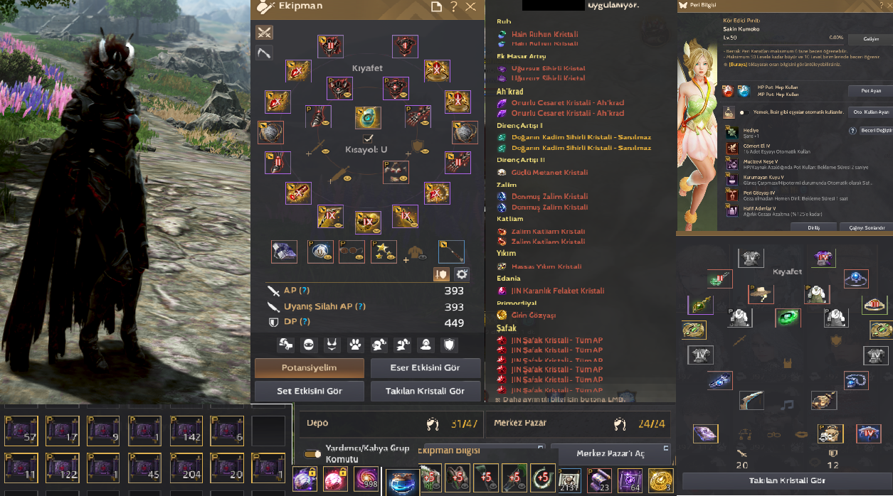 Oynanan Karakterleri Envanterleri ve ağırlıkları 2,5k ağırlık üstüdür