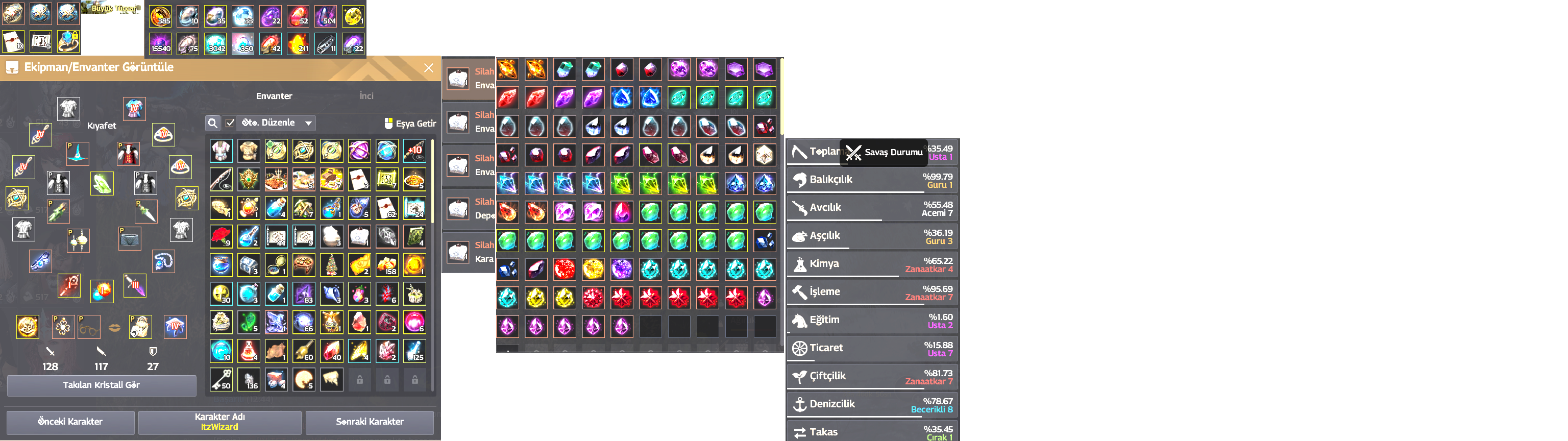 63.12LVL Wizard (Eğitim giysisi ve lifeskill bunda 1109LT 116 Slot