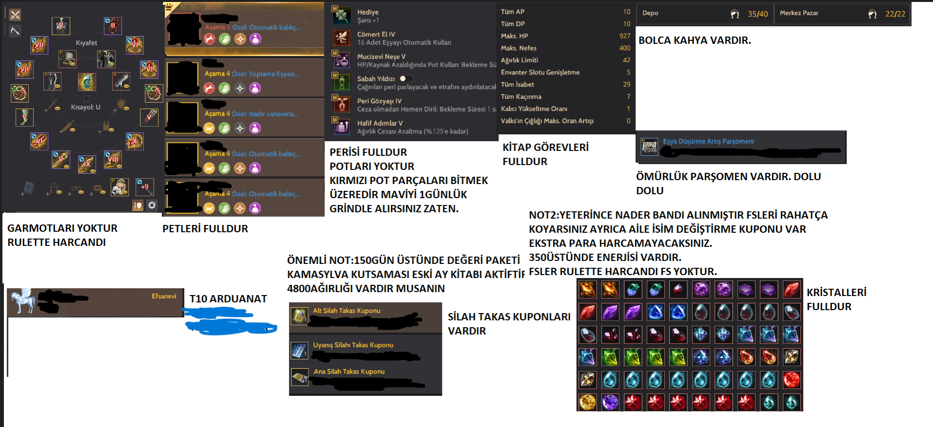 8SİLAH PARASINA FUL HESAP SATIYORUM 1AY GRİNDLE 800GS ÜSTÜNE ÇIKIYOR HESAP ÇOK OYNARSANIZ 15GÜN DEĞERİDE BİR HAYLİ ARTAR BEN ÇOK SOĞUDUM UĞRAŞMAK İSTEMEDİĞİM İÇİN BEDAVA FİYATA ATIYORUM ALAN ALSIN.