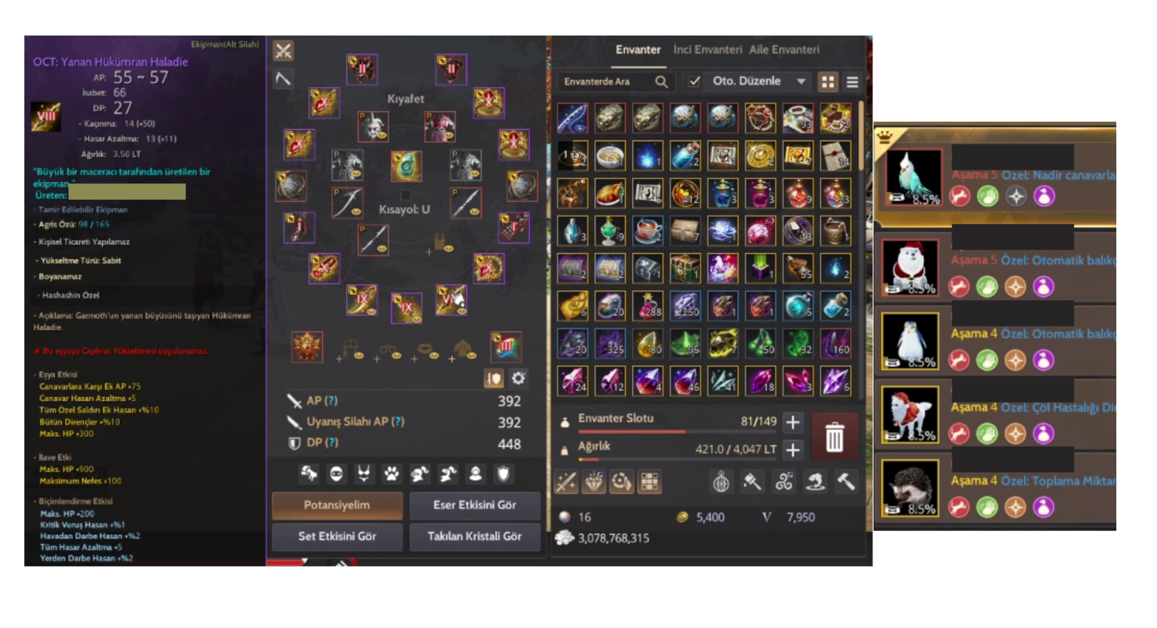 Hesap hem pve hem pvp neredeyse end geardadır.
