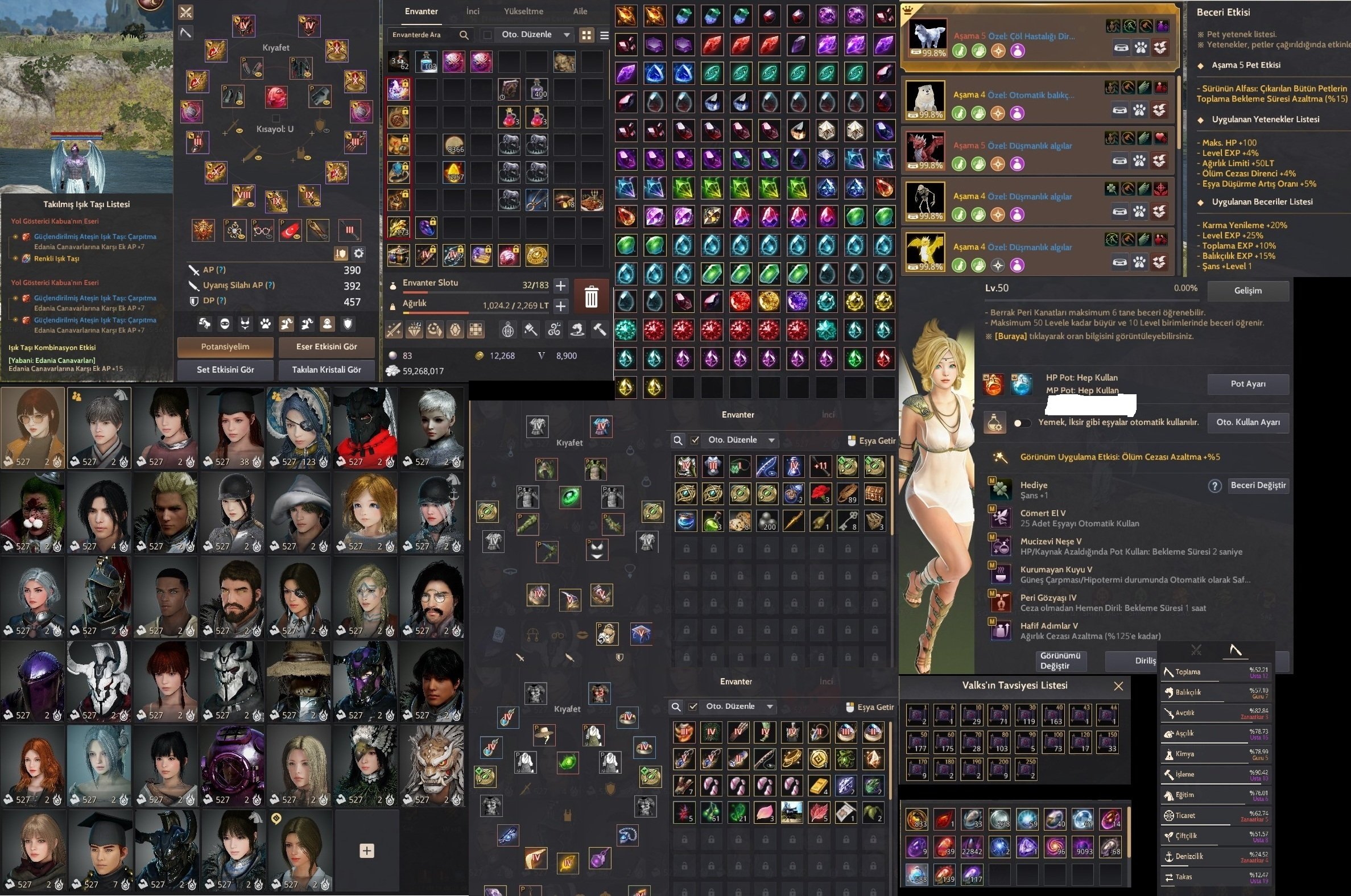 66LVL LAHN 65LVL SAHİRE 65LV DOSA VE GERİYE KALAN KARATERLERİN HEPSİ NERDEYSE 60 VE ÜZERİ