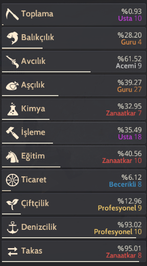 66 tamer 64 berserk 63 cadı ve 20-25 tane 61-62 karakter vardır.