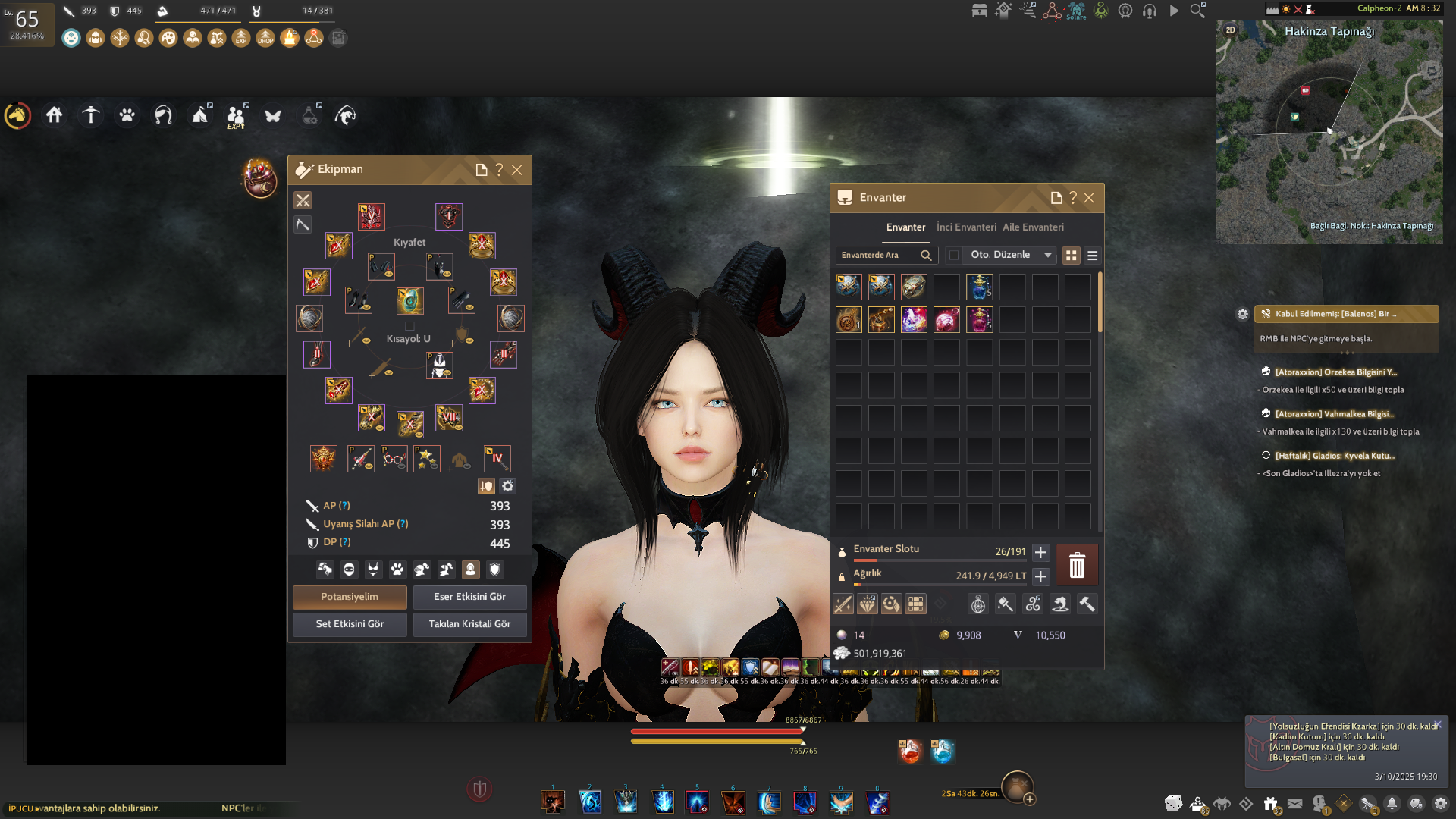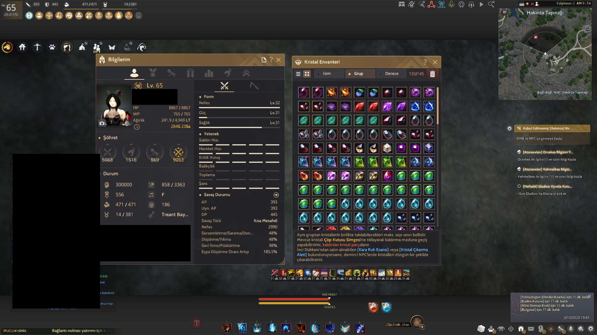 65 Lvl main mistik 5000L ağırlık 192 Envanter.