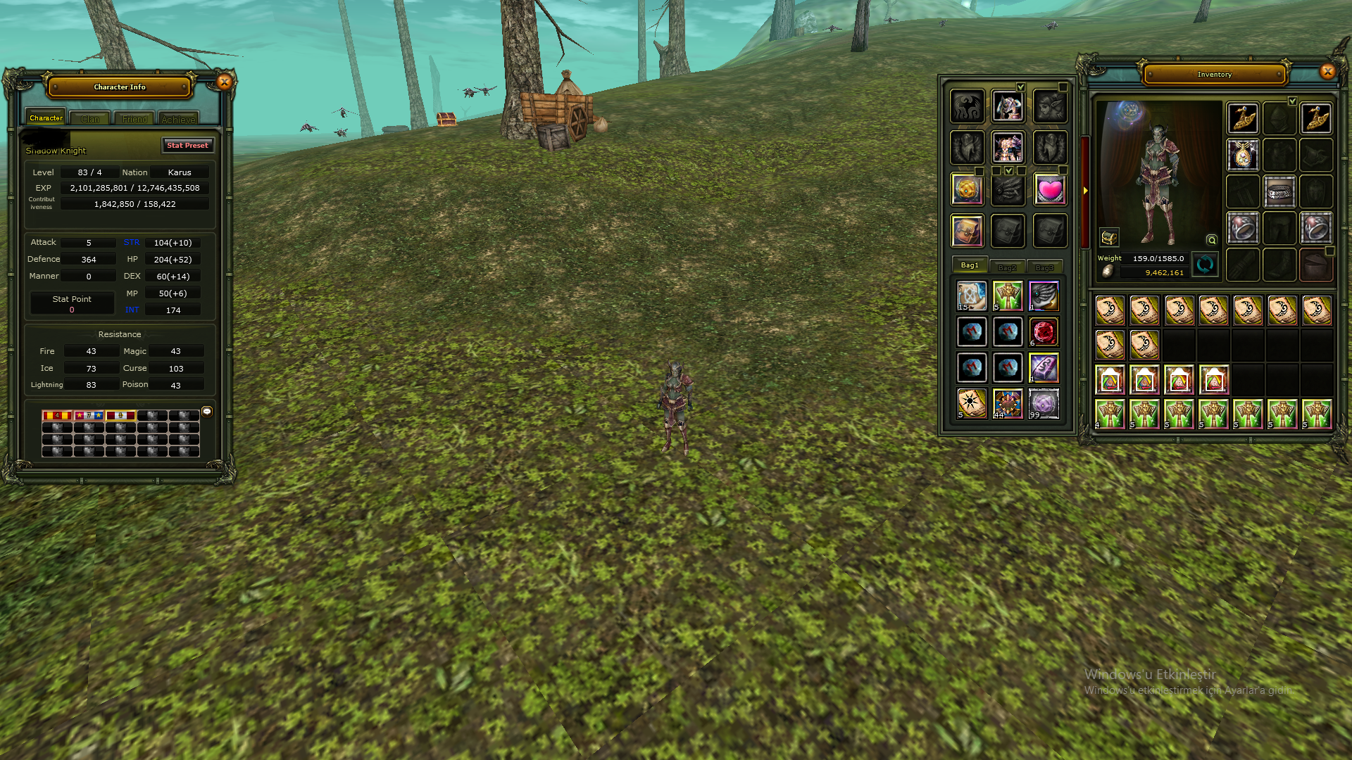 Yan karakter bilgileri 60 okçu 45 warrior 1 slot boş