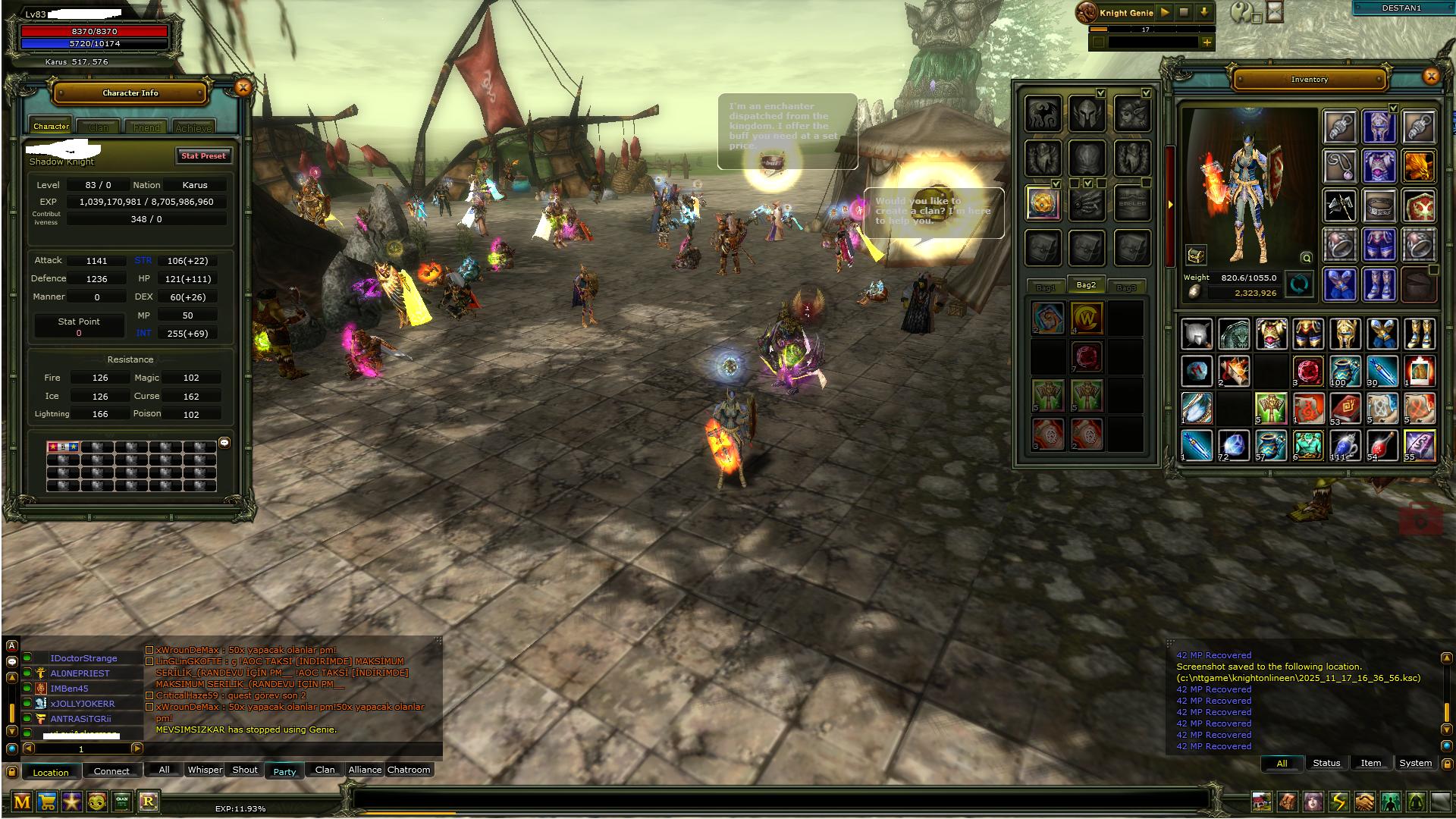 Yan karakter bilgileri 4 slotta doludur yan char andream okçu vs. var