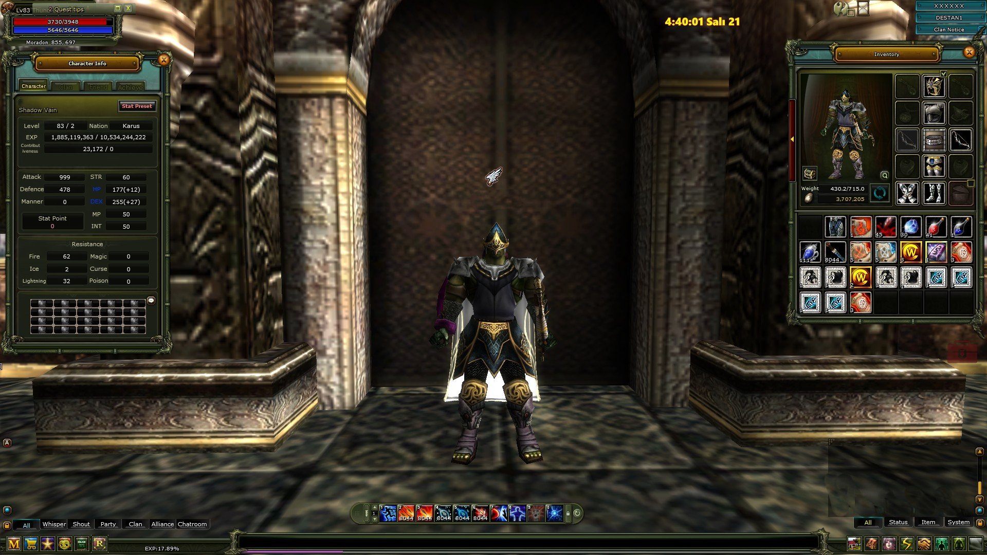 Görev Durumu cz (evil karamash 80 quest) luferson full duruyor esland full duruyor