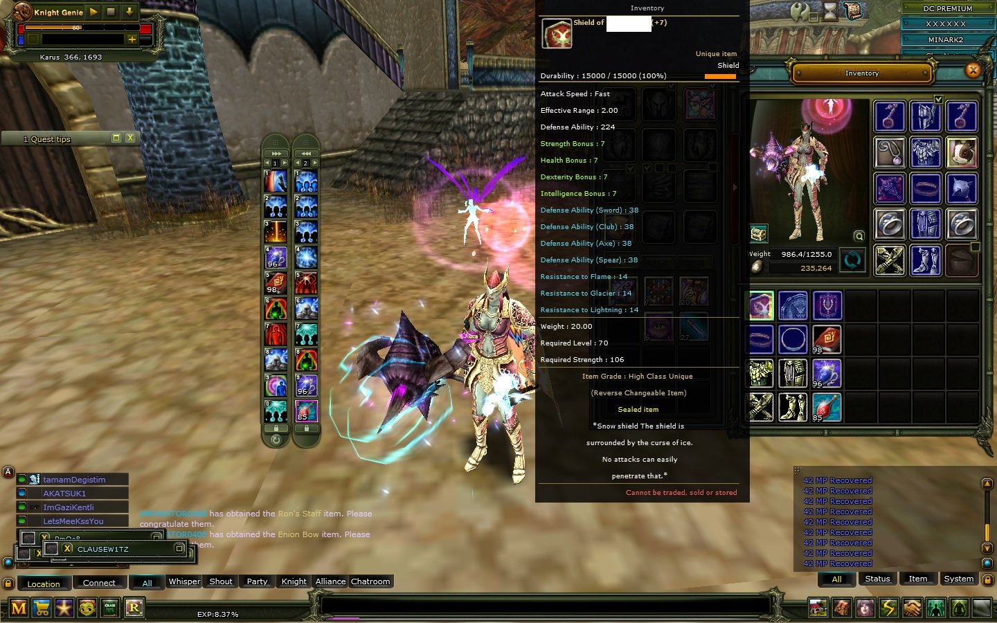 Yan karakter bilgileri 2 adet 77 okcu 1 slot boş