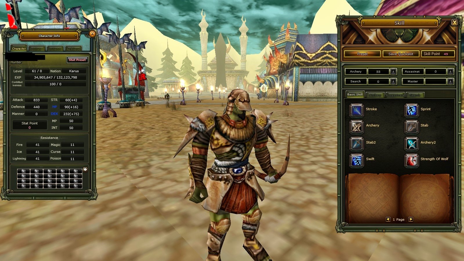 Skill durumu 55 archery, 49 skill puanı boşta verilmedi.
