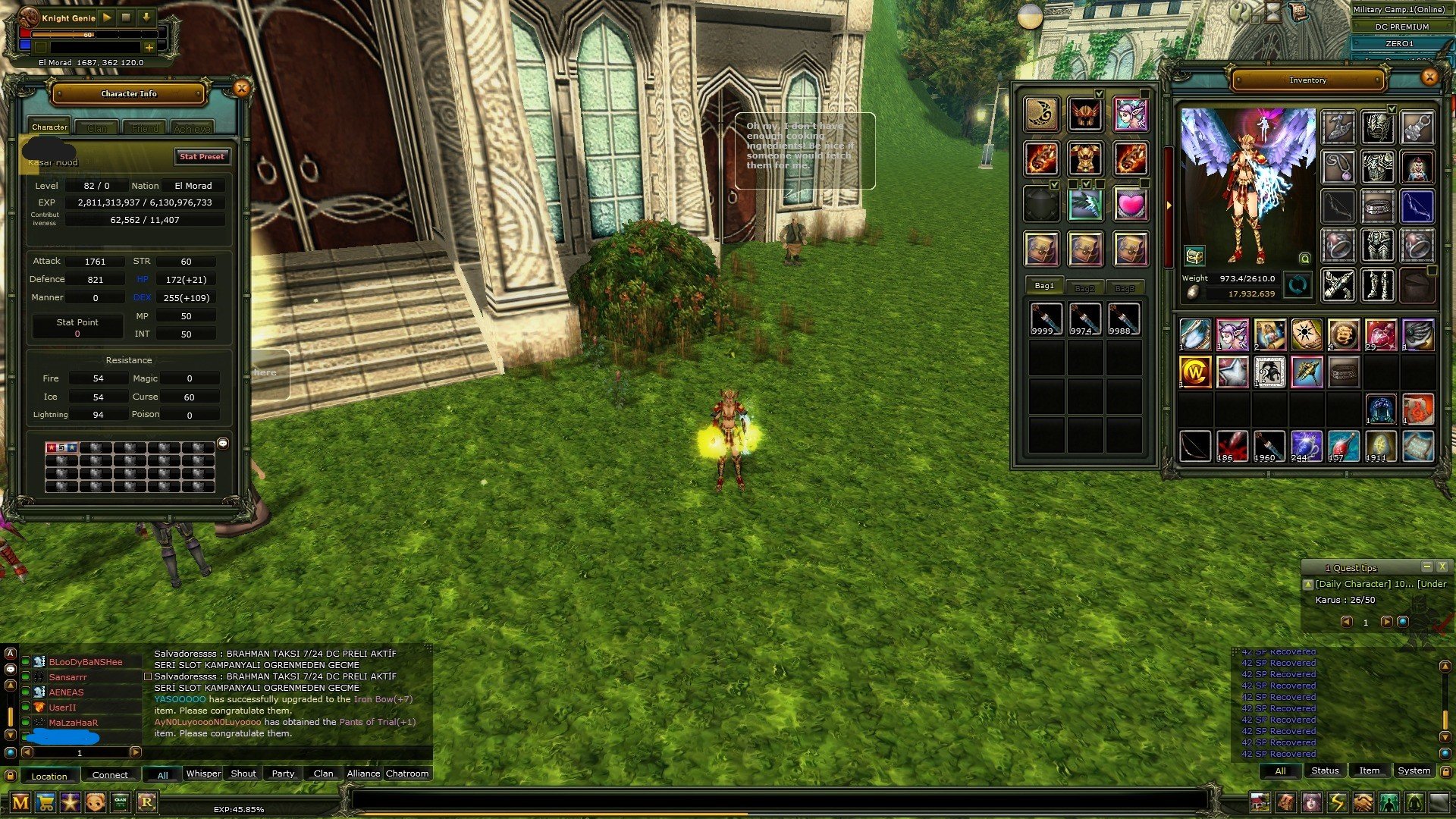 Yan karakter bilgileri 74 Pri 0 Quest Kalknalı, 49 Warrior, 66 Asas Görevleri Duruyor