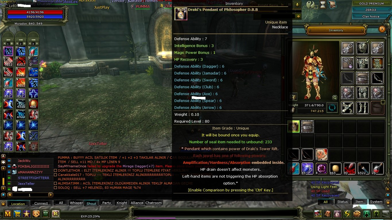 Yan karakter bilgileri 75 mage 71 warrior 45 priest