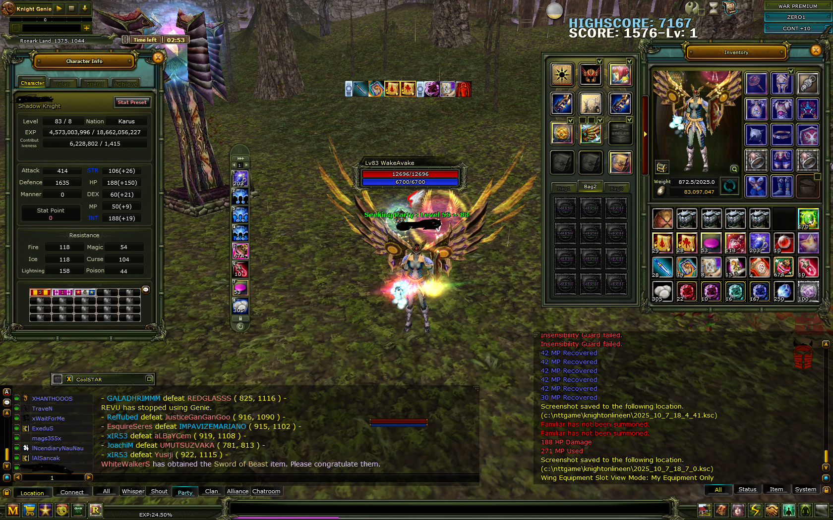Yan karakter bilgileri 82 Mage, 72 Warrior