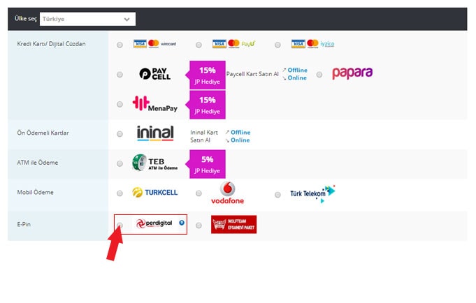 Ödeme yöntemlerinden "Perdigital" seçeneğine tıklayınız.